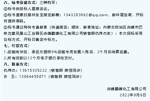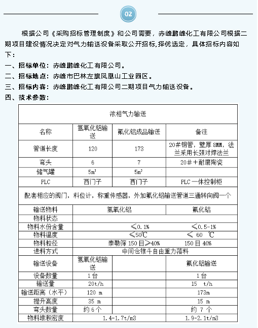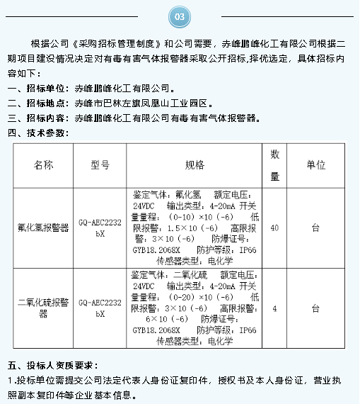 【招標(biāo)公告】鵬峰化工無水氟化氫運(yùn)輸、氣力輸送設(shè)備、有毒有害氣體報(bào)警器招標(biāo)