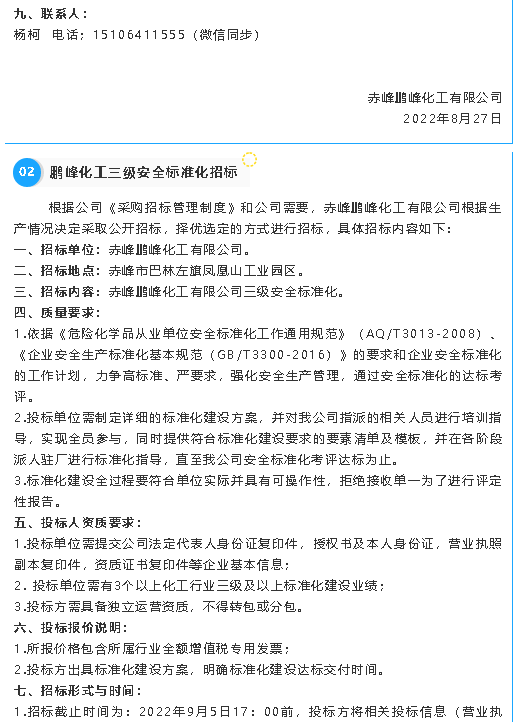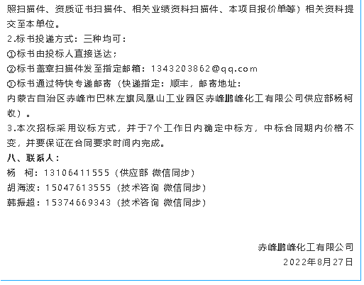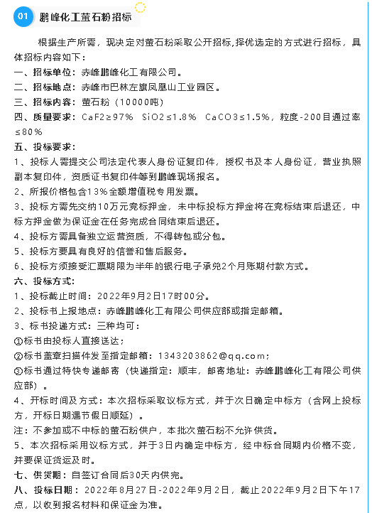【招標(biāo)公告】鵬峰化工