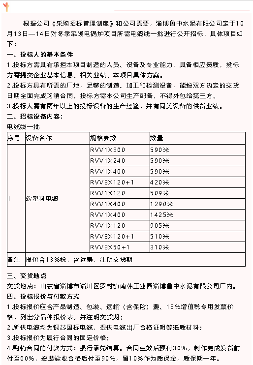 【招標公告】魯中水泥