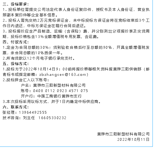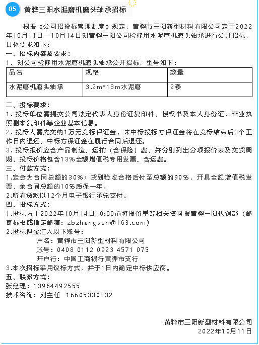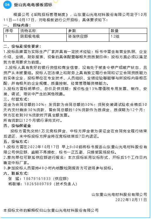 【招標(biāo)公告】重山集團(tuán)、魯蒙水泥、黃驊三陽、重山光電