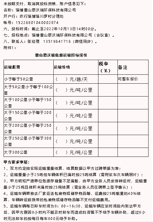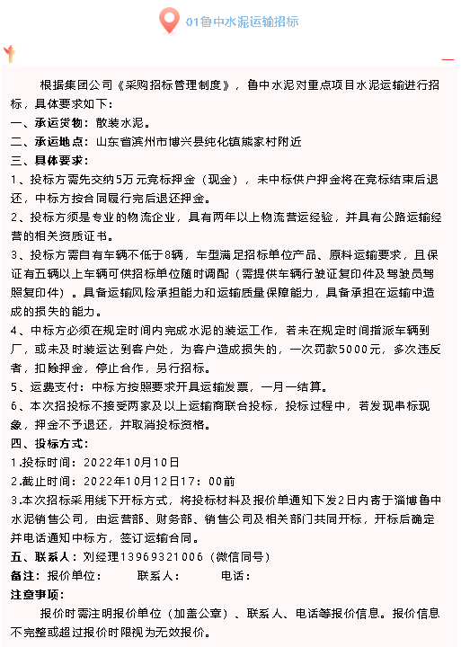 【招標(biāo)公告】魯中水泥、重山思沃瑞