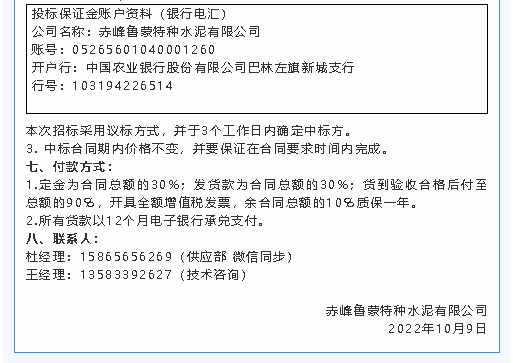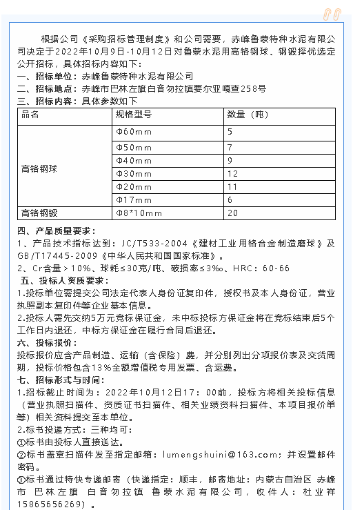【招標(biāo)公告】魯蒙水泥