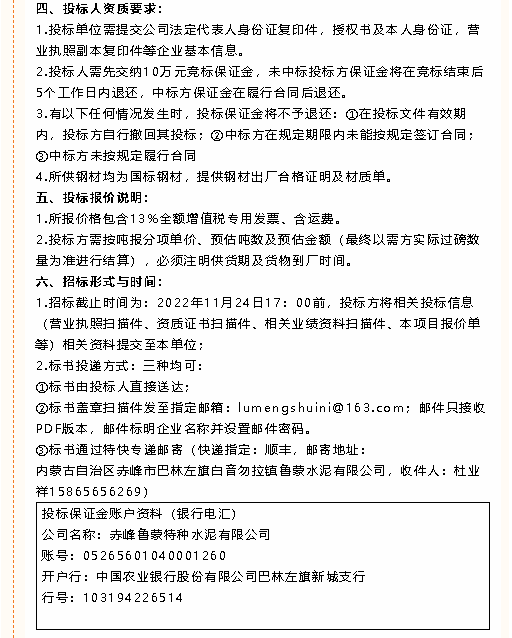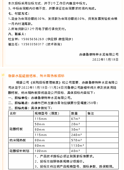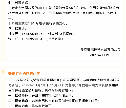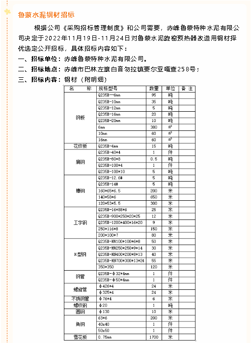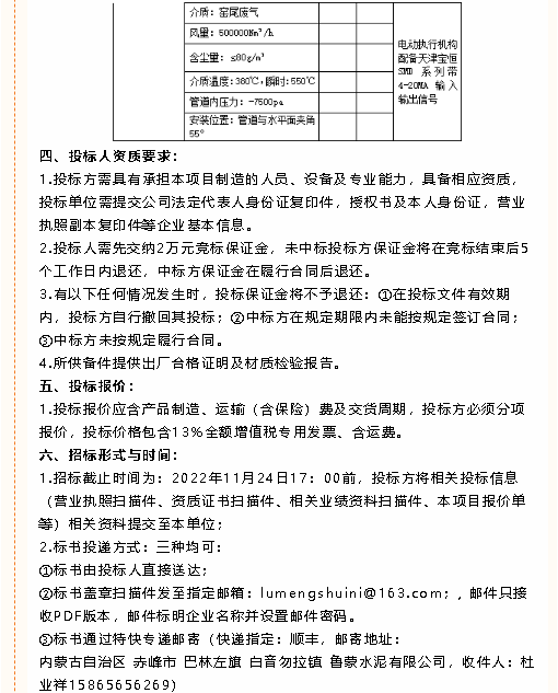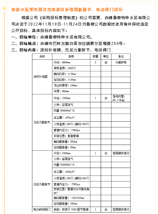 【招標公告】魯蒙水泥風機、鋼材、硅酸鈣板、納米隔熱板、錨固件、波紋補償器膨脹節(jié)、電動閥門招標