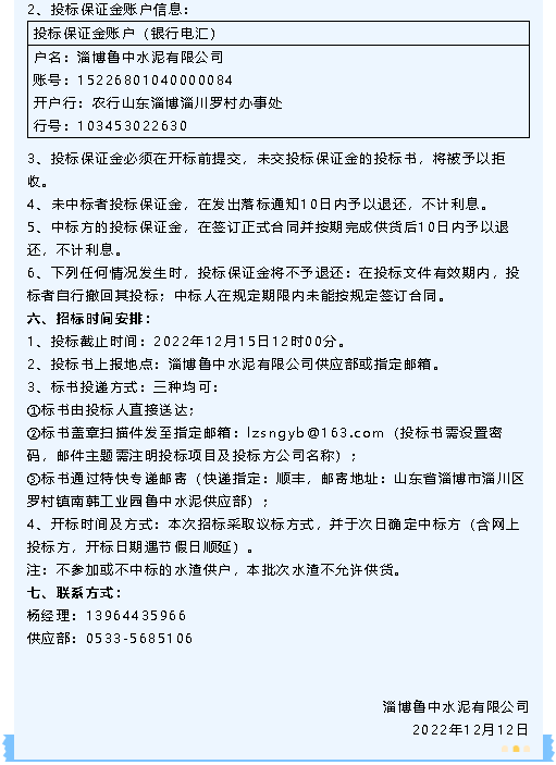 【招標(biāo)公告】魯中水泥