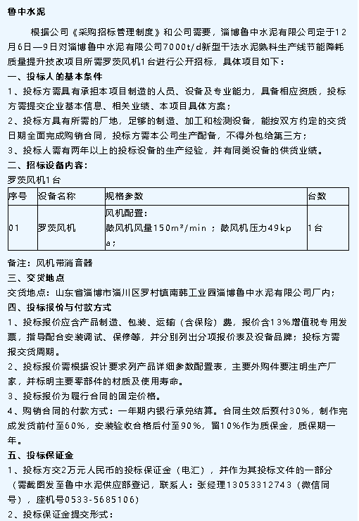 【招標(biāo)公告】魯中水泥、黃驊三陽(yáng)