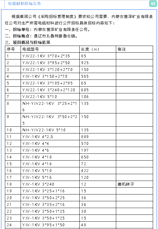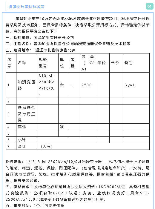 【招標(biāo)公告】螢澤礦業(yè)油浸變壓器、低壓配電柜、電纜材料招標(biāo)公告