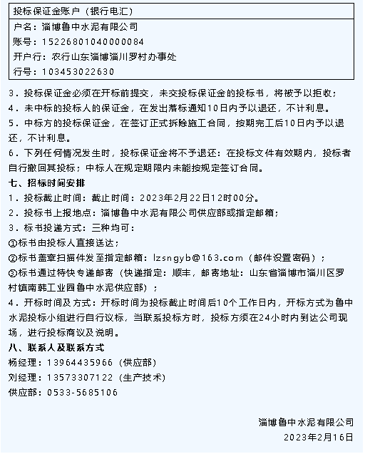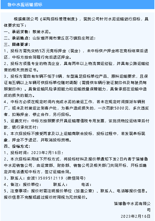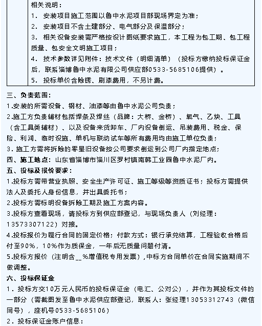 【招標(biāo)公告】魯中水泥技改工程設(shè)備安裝、運(yùn)輸招標(biāo)