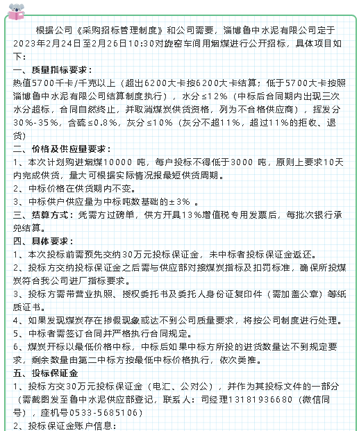 【招標(biāo)公告】魯中水泥