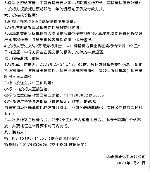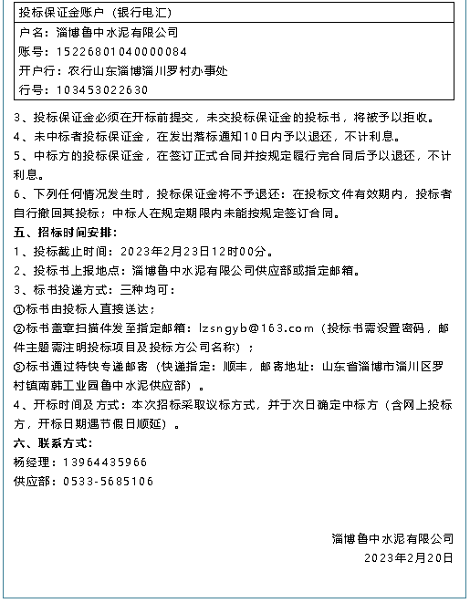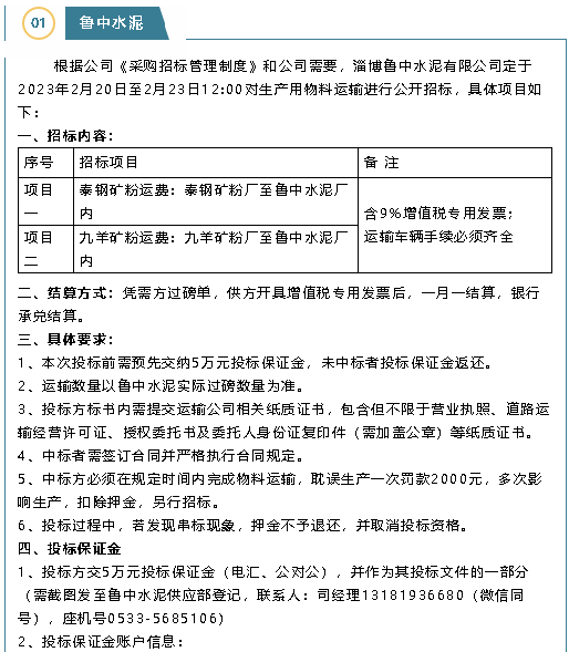 【招標(biāo)公告】魯中水泥、鵬峰化工