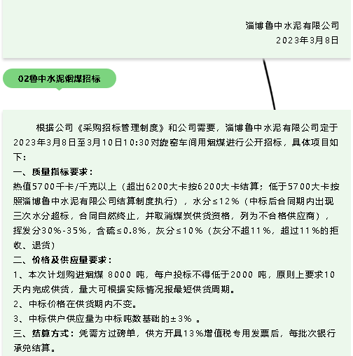 【招標(biāo)公告】魯中水泥粉煤灰、煙煤招標(biāo)