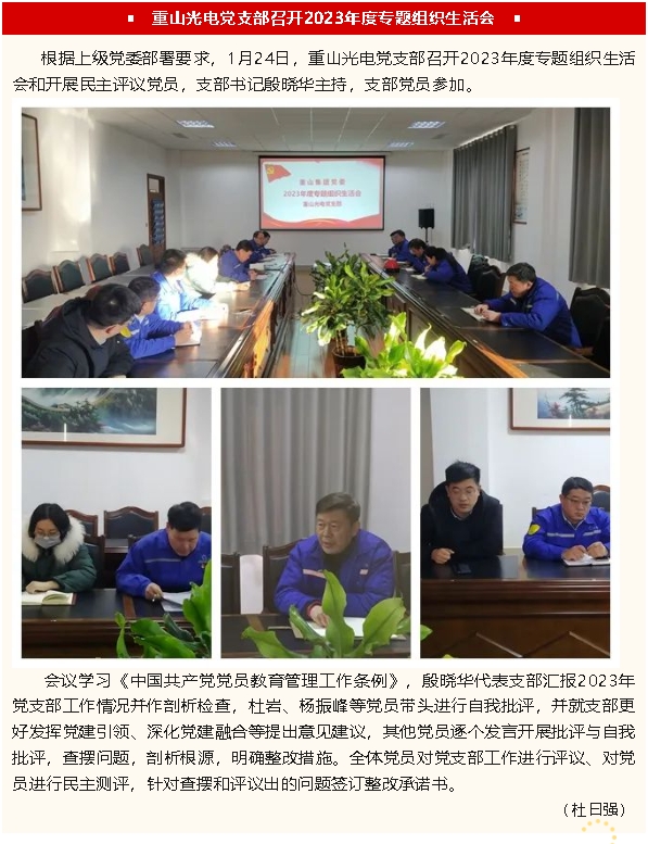 【黨建】魯中水泥黨支部、重山光電黨支部分別召開2023年度專題組織生活會(huì)