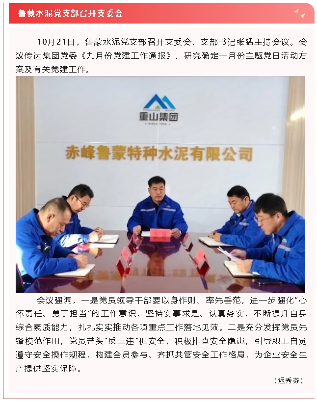 【黨建】南韓化工黨支部開展主題黨日活動、魯蒙水泥黨支部召開支委會
