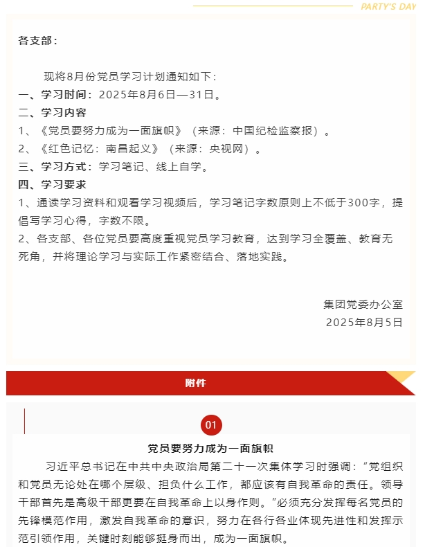 【通知】集團(tuán)黨委八月份學(xué)習(xí)通知