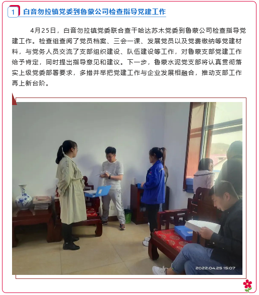 【黨建】白音勿拉鎮(zhèn)黨委到魯蒙公司檢查指導黨建工作、魯蒙水泥黨支部開展主題黨日活動