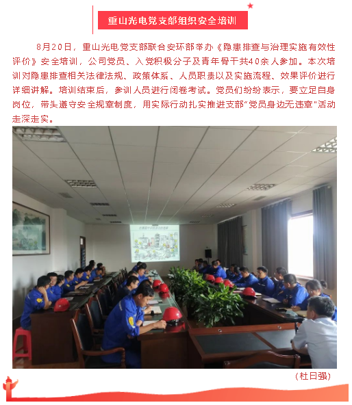 【黨建】集團(tuán)機(jī)關(guān)黨支部召開(kāi)發(fā)展黨員推選會(huì)議、重山光電黨支部組織安全培訓(xùn)