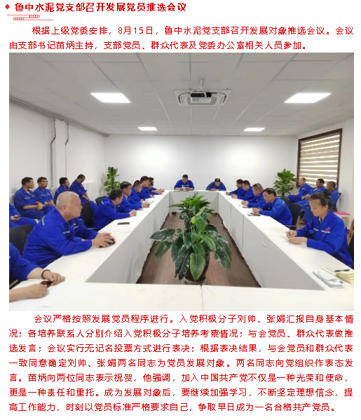 【黨建】魯中水泥黨支部召開(kāi)發(fā)展黨員推選會(huì)議、集團(tuán)機(jī)關(guān)黨支部召開(kāi)支委會(huì)