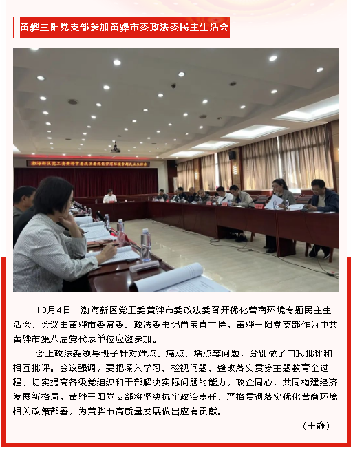 【黨建】集團(tuán)黨委開(kāi)展9月份黨建工作督查、黃驊三陽(yáng)黨支部參加黃驊市委政法委民主生活會(huì)