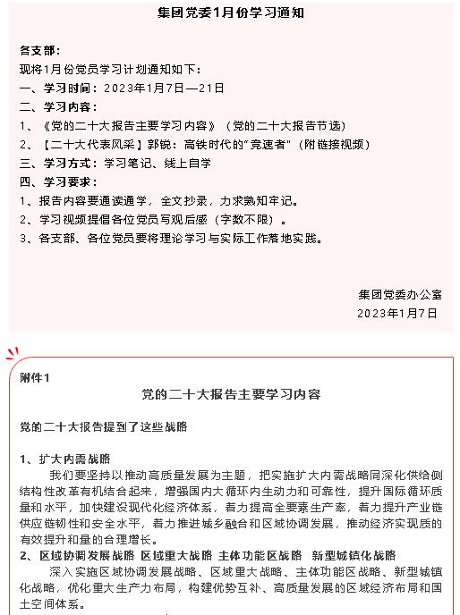 【通知】集團(tuán)黨委1月份學(xué)習(xí)通知