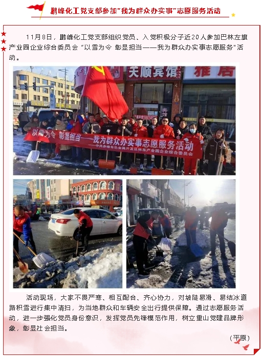 【黨建】黃驊三陽黨支部召開預(yù)備黨員轉(zhuǎn)正支部大會(huì)、鵬峰化工黨支部參加“我為群眾辦實(shí)事”志愿服務(wù)活動(dòng)